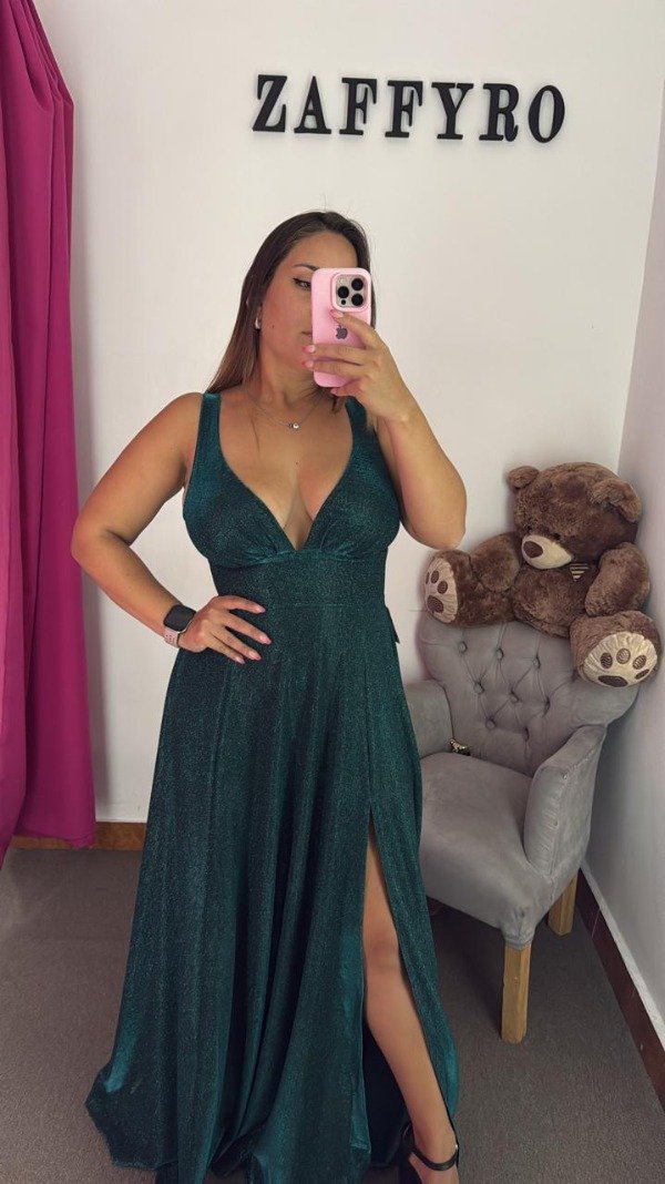 Vestido de Gliter elastizado ( en la foto estoy usando talle M, tengo 100 de busto y 42 de jeans, para que tengan una referencia 🥰)